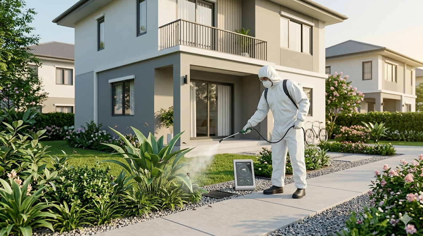 Residual spray for adult mosquito management in residential townships and industrial campuses.